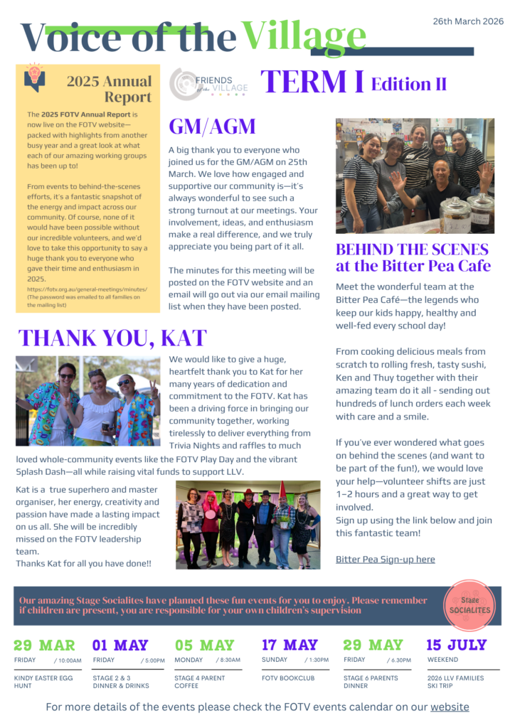 Friends of the Village is the P&C Association of Lindfield Learning Village. We are an active and passionate community of parents and carers.